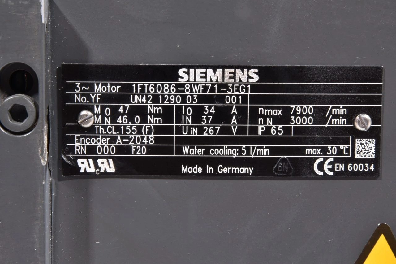 Siemens SIMOTICS S Synchronservomotor 1FT6 47Nm, 1FT6086 8WF71 3EG1