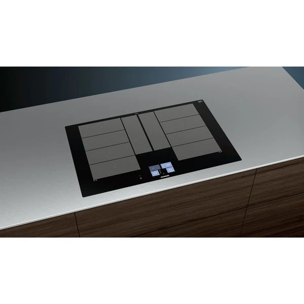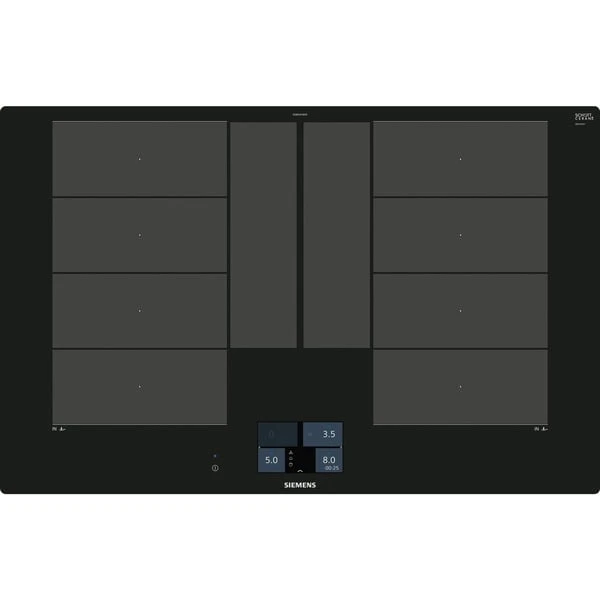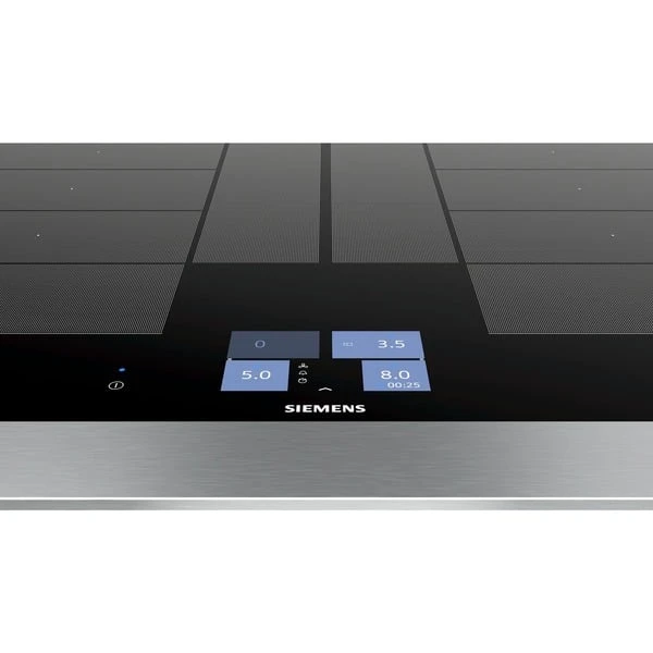 Das Induktions-Kochfeld Siemens EX801KYW1E iQ700 überzeugt mit innovativen Features und einer Glaskeramik-Oberfläche, außerdem ist es Kochsensor Plus ready (Kochsensor nicht im Lieferumfang enthalten). Es ist HomeConnect-fähig über WLAN, so erhält man Informationen über sein Kochfeld, egal wo man gerade ist, mit der einfach zu bedienenden Home Connect App. (in Ländern, in denen Home Connect Service verfügbar ist). Auch das cookConnect System wird unterstützt (mit passender Dunstabzugshaube), so dass sich diverse Funktionen der Dunstabzugshaube direkt vom Kochfeld aus steuern lassen. Das Kochfeld bietet zwei große variable Kochzonen mit powerBoost-Funktion, die sich bequem über das TFT-Touchdisplay steuern lassen. varioInduktion Plus passt die Kochzonen an Kochgeschirr bis zu 30cm Durchmesser automatisch an, für mehr Flexibilität. Das EX801KYW1E bietet auch Platz für große Bräter, der Bräter wird sogar erkannt und die Bräterzone automatisch zugeschaltet. Der bratSensor Plus hält die gewünschte Temperatur der Pfanne nach dem Erhitzen automatisch konstant, damit nichts anbrennt. Um noch mehr Freiheiten beim Kochen zu erlauben, merkt sich varioMotion die Einstellung jedes Topfes. So kann man das Kochgeschirr ganz nach Wunsch bewegen, während die Kochzonen die eingestellte Temperatur automatisch übernehmen. In puncto Sicherheit gibt beim EX801KYW1E eine 2-stufige Restwärmeanzeige Meldung darüber, ob und welche der Kochzonen noch Hitze abgibt, außerdem bietet das Kochfeld eine Kindersicherung und einen Timer mit Ausschaltfunktion.Art.-Nr.: 1447840