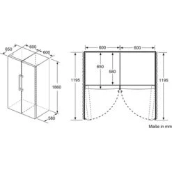 | Abmessungen | Breite: 600 mm x Höhe: 1.860 mm x Tiefe/Länge: 650 mm | ||