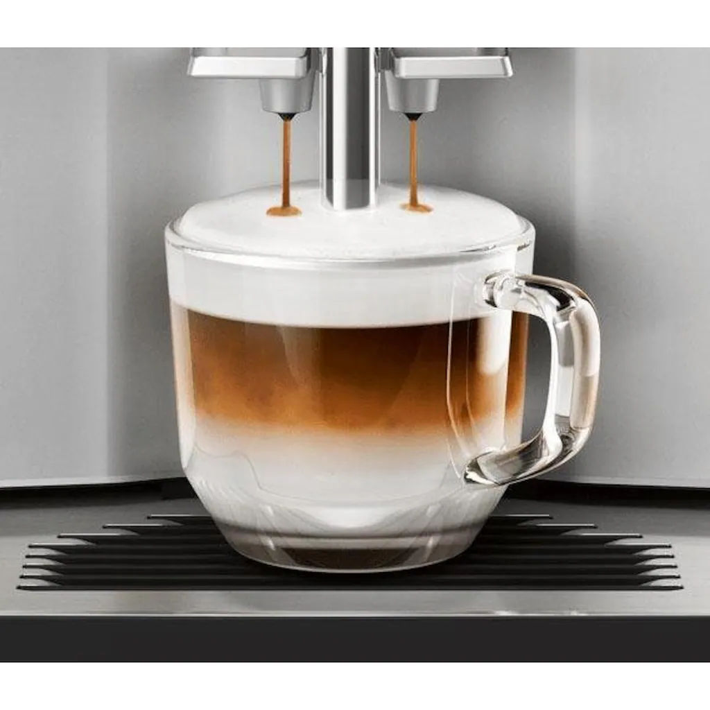 | Weitere Vorteile | • Kaffeeauslauf und Milchschäumer höhenverstellbar: Bis zu 13 cm (max) hohe Latte Macchiato Gläser• Leicht zugängliche Servicetür an der Gerätefront für schnelle Reinigung• Wassertank entnehmbar zum leichten Befüllen (1.4 l Volumen)• Entnehmbare Brüheinheit für einfache Reinigung• Automatisches Spülprogramm beim Ausschalten/Einschalten• Milchschäumer, Tropfschale, Kaffeesatzbehälter entnehmbar und spülmaschinengeeignet• Automatisches Reinigungs- und Entkalkungsprogramm• Bohnenbehälter mit Aromaschutzdeckel (250 g Volumen)• Mahlgrad mehrstufig einstellbar• Geeignet für BRITA Intenza Wasserfilter• Displaysprache auswählbar• Zusätzliche Funktionen und mehr Komfort garantiert dank des Komfortpakets. |