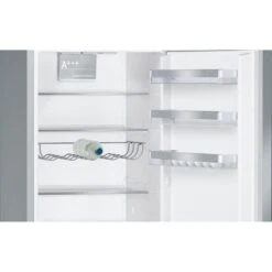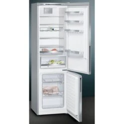 Die Kühl-/Gefrierkombination Siemens KG39EAICA ist mit einem Gesamtnutzinhalt von 343 Litern ideal für den mittelgroßen Haushalt geeignet. Im 249 Liter umfassende Kühlbereich haben frische Lebensmittel auf fünf Abstellflächen aus Sicherheitsglas, davon zwei höhenverstell- und vier ausziehbar, in einer hyperFresh Obst-/Gemüseschublade mit Feuchteregelung und einer hyperFresh 0°C Box für Fisch und Fleisch sowie in vier Türfächern jede Menge Platz um übersichtlich gelagert zu werden. Mit der Taste superCooling werden die Temperaturen im Kühlraum schnell auf +2 °C gesenkt, was beim Einlagern von wärmeren Lebensmitteln in den Kühlraum einen unerwünschten Temperaturanstieg bereits gut gekühlter Speisen verhindert. Der Gefrierbereich der KG39EAICA umfasst 94 Liter und ist mit drei transparenten Gefriergutschubladen, davon eine BigBox, ausgestattet, die dank ViarioZone flexibel ein gesetzt werden können. LowFrost reduziert die Eisbildung, sodass man den Gefrierraum deutlich seltener abtauen muss. Die Temperaturregelung der KG39EAICA erfolgt getrennt für Kühl- und Gefrierbereich und ist digital exakt ablesbar.Art.-Nr.: 1633203
