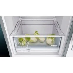 Die Kühl-/Gefrierkombination Siemens KG39VVLEA ist mit einem Gesamtnutzinhalt von 343 Litern ideal für den großen Haushalt geeignet und bietet viel Komfort. Im 249 Liter umfassende Kühlbereich haben frische Lebensmittel auf vier Absllflächen aus Sicherheitsglas, davon zwei höhenverstell- und drei ausziehbar, in einer hyperFresh Box mit Feuchteregelung für Obst und Gemüse sowie in drei Türfächern jede Menge Platz. Der Gefrierbereich umfasst 94 Liter und ist mit drei transparenten Gefriergutschubladen, davon eine bigBox, ausgestattet, die dank VarioZone herausgenommen und flexibel genutzt werden können. lowFrost sorgt für eine geringere Eisbildung, was Energie und Arbeit beim Abtauen spart. Die Temperaturregelung der KG39VVLEA erfolgt elektronisch und ist über LED ablesbar. Mit einem Stromverbrauch von 233 kWh im Jahr ist die KG39VVLEA in die Energieeffizienzklasse E eingestuft.Art.-Nr.: 1667531