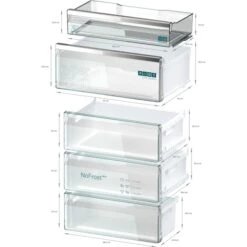 Die Kühl-/Gefrierkombination Siemens KG49NAICT ist mit einem Gesamtnutzinhalt von 440 Litern ideal für den großen Haushalt geeignet. Im 311 Liter umfassende Kühlbereich haben frische Lebensmittel auf fünf Abstellflächen aus Sicherheitsglas, davon drei höhenverstellbar, in einer hyperFresh Obst-/Gemüseschublade und einer hyperFresh 0°C Box für Fisch und Fleisch sowie in vier Türfächern jede Menge Platz, um übersichtlich gelagert zu werden. Mit der Taste superCooling werden die Temperaturen im Kühlraum schnell auf +2 °C gesenkt, was beim Einlagern von wärmeren Lebensmitteln in den Kühlraum einen unerwünschten Temperaturanstieg bereits gut gekühlter Speisen verhindert. Die Metallrückwand mit multiAirflow-System sorgt für gleichmäßig gekühlte Lebensmittel auf allen Ebenen. Der Gefrierbereich der KG49NAIBT umfasst 129 Liter und ist mit drei transparenten Gefriergutschubladen ausgestattet. NoFrost verhindert die Eisbildung, sodass man den Gefrierraum nie wieder mühsam abtauen muss, und das einzigartige LED-freezerLight-System leuchtet direkt in die geöffneten Gefrierschubladen, damit man alles in Sekunden findet. Die Temperaturregelung und Funktionssteuerung der KG49NAICT erfolgt getrennt für Kühl- und Gefrierbereich und ist von außen digital exakt ablesbar und dank Home Connect lässt sich das Gerät per App von überall aus steuern. Mit einem Stromverbrauch von 178 kWh im Jahr ist die KG49NAICT in die Energieeffizienzklasse C eingestuft.Art.-Nr.: 1899900