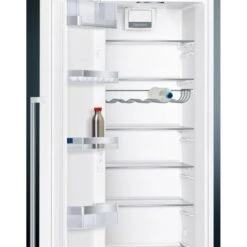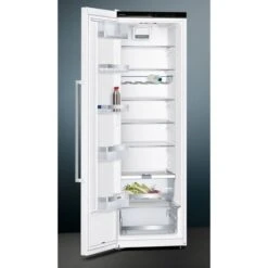 Der Kühlschrank Siemens KS36VAWEP stellt einen groszügigen Gesamtnutzinhalt von 346 Litern zur übersichtlichen Lagerung frischer Lebensmittel zur Verfügung und bietet viel Komfort. Ausgestattet ist er mit sieben Abstellflächen aus Sicherheitsglas, davon vier höhenverstell- und fünf ausziehbar, einem verchromten Flaschenrost sowie vier Türfächern. Die hyperFresh plus Box mit Feuchteregelung hält Obst und Gemüse bis zu zweimal länger frisch und die Fresh Box lässt sich dank der Teleskopschienen bequem ausziehen. Die intelligente Sensortechnik freshSense sorgt im gesamten Kühlraum für eine konstante Temperatur und mit der SuperKühlen-Funktion wird die Temperatur für eine eingestellte Zeit gesenkt, damit beim Einlagern wärmerer Lebensmittel ein unerwünschter Temperaturanstieg bereits gekühlter Speisen verhindert wird. Mit einem Stromverbrauch von 116 kWh im Jahr ist der KS36VAWEP in die Energieeffizienzklasse E eingestuft.Art.-Nr.: 1690770