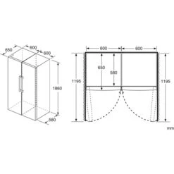 | Weitere Fächer / Infos | 1 hyperFresh plus Box mit Feuchteregelung, 1 Fresh Box auf Teleskopschienen, Flaschengitter/-Board | ||