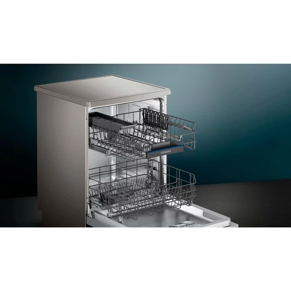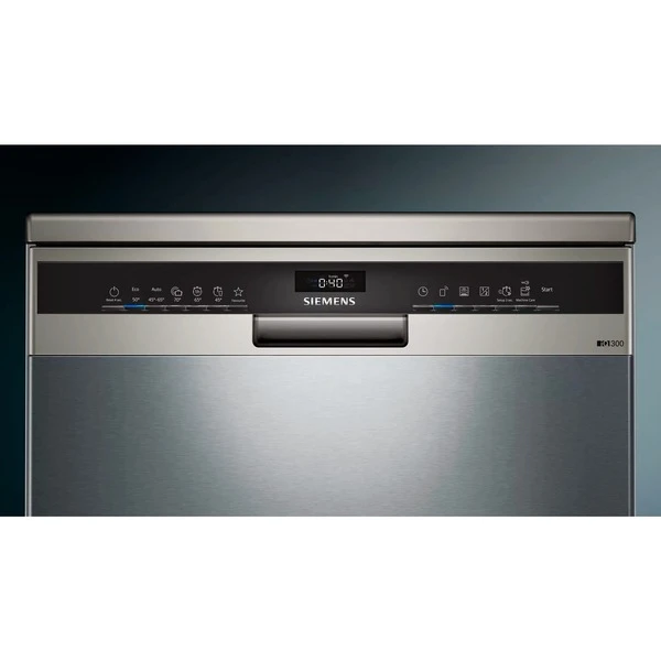 Der Geschirrspüler Siemens iQ300 SN23HI60AE kann bis zu 13 Maßgedecke aufnehmen und bietet sechs Spülprogramme sowie vier Sonderfunktionen plus Maschinenpflegeprogramm. Das Automatik-Programm steuert effizient den gesamten Spülprozess und dank VarioSpeed Plus wird eine bis zu dreimal so schnelle Programmlaufzeit erzielt. Über die Favoriten Taste können individuelle Einstellungen per Knopfdruck aufgerufen werden. Das Zuschalten der intensiveZone sorgt für mehr Sprühdruck im Unterkorb, wodurch hartnäckige Verschmutzungen entfernt werden. Die flex Körbe bieten viel Flexibilität und Bedienkomfort beim Be- und Entladen. Der höhenverstellbare Oberkorb verfügt über eine Besteckablage. Das AquaStop-System schützt vor Wasserschäden. Mit einer Lautstärke von 44 Dezibel ist der SN23HI60AE zudem angenehm leise. Der SN23HI60AE kann jederzeit und von überall bequem per Home Connect App über Handy oder Tablet gesteuert werden.