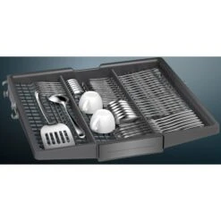 Der teilintegrierbare Geschirrspüler Siemens SN55TS00CE mit Zeolith-Trocknen nimmt bis zu 14 Maßgedecke auf. Zur Verfügung stehen acht verschiedene Spülprogramme sowie vier Zusatzfunktionen. Das Automatik-Programm steuert effizient den gesamten Spülprozess und dank VarioSpeed Plus wird eine bis zu dreimal so schnelle Programmlaufzeit erzielt. Die glassZone ermöglicht eine sichere und schonende Reinigung empfindlicher Gläser im Oberkorb. Die flexComfort Pro Körbe und die varioSchublade Pro bieten hohen Bedienkomfort, wirksamen Gläserschutz und ermöglichen schnelles Be- und Entladen. Das blaue emotionLight sorgt für eine ansprechende Beleuchtung des Innenraums. Das AquaStop-System schützt vor Wasserschäden. Mit einer Lautstärke von 44 Dezibel ist der SN55TS00CE zudem angenehm leise, noch leiser läuft er im Silence-Programm. Der SN55TS00CE kann jederzeit und von überall bequem per Home Connect App über Handy oder Tablet gesteuert werden.Art.-Nr.: 1774376