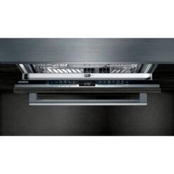 Der vollintegrierbare Geschirrspüler Siemens iQ300 SN63HX41TE kann bis zu 12 Maßgedecke aufnehmen und bietet sechs Spülprogramme sowie vier Sonderfunktionen plus Maschinenpflegeprogramm. Das Automatik-Programm steuert effizient den gesamten Spülprozess und dank VarioSpeed Plus wird eine bis zu dreimal so schnelle Programmlaufzeit erzielt. Über die Favoriten Taste können individuelle Einstellungen per Knopfdruck aufgerufen werden. Das Zuschalten der intensiveZone sorgt für mehr Sprühdruck im Unterkorb, wodurch hartnäckige Verschmutzungen entfernt werden. InfoLight – ein blauer Lichtpunkt auf dem Boden gibt Auskunft, ob der Geschirrspüler noch läuft oder bereits fertig ist. Das AquaStop-System schützt vor Wasserschäden. Mit einer Lautstärke von 44 Dezibel ist der SN63HX41TE zudem angenehm leise. Der SN63HX41TE kann jederzeit und von überall bequem per Home Connect App über Handy oder Tablet gesteuert werden.