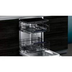 Der integrierbare XXL-Geschirrspüler Siemens iQ300 SX53HS60CE kann bis zu 14 Maßgedecke aufnehmen und bietet sechs Spülprogramme sowie vier Sonderfunktionen plus Maschinenpflegeprogramm. Das Automatik-Programm steuert effizient den gesamten Spülprozess und dank VarioSpeed Plus wird eine bis zu dreimal so schnelle Programmlaufzeit erzielt. Über die Favoriten Taste können individuelle Einstellungen per Knopfdruck aufgerufen werden. Das Zuschalten der intensiveZone sorgt für mehr Sprühdruck im Unterkorb, wodurch hartnäckige Verschmutzungen entfernt werden. Die flex Körbe und die varioSchublade bieten viel Flexibilität und Bedienkomfort beim Be- und Entladen. Das AquaStop-System schützt vor Wasserschäden. Mit einer Lautstärke von 44 Dezibel ist der SX53HS60CE zudem angenehm leise. Der SX53HS60CE kann jederzeit und von überall bequem per Home Connect App über Handy oder Tablet gesteuert werden.
