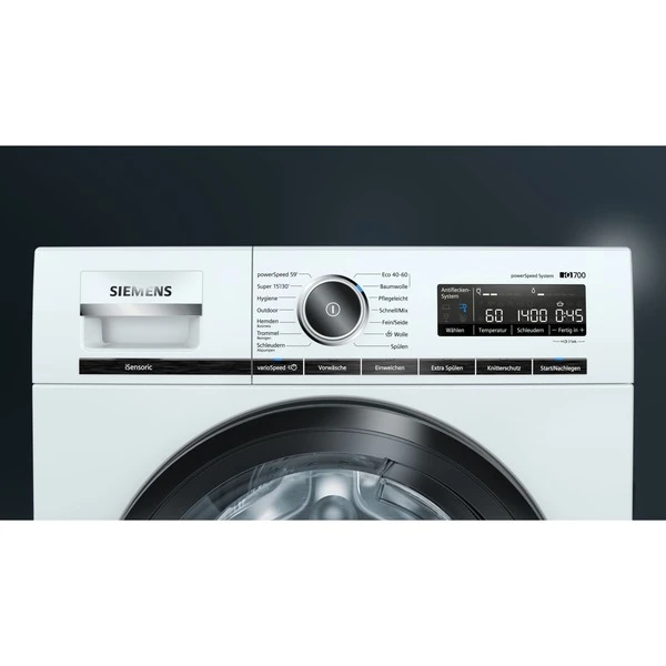 | Feature | Nachlegefunktion, powerSpeed System (bessere Waschergebnisse in kürzerer Zeit), waterPerfect Plus (für eine effiziente Wassernutzung auch bei geringer Beladung dank intelligenter Sensortechnologie), iQdrive (energiesparenste und leiseste Motorentechnologie) | ||