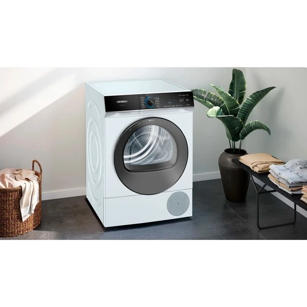 Der Wärmepumpen-Kondensationstrockner Siemens WQ35B2B30 iQ700 trocknet bis zu 8 kg Wäsche in 179 Minuten schranktrocken. Der WQ35B2B30 verfügt über ein 40-Minuten-Schnelltrocken- und ein Outdoor-Programm zur schonenden Trocknung von Funktionstextilien für Sport- und Outdoor-Aktivitäten. Die sensorgesteuerte autoDry-Technologie sorgt für schonendes, präzises Trocknen, das die Kleidung schützt und das softDry-Trommelsystem ermöglicht ein besonders sanftes Wäschetrocknen. Das LED-Display beeindruckt durch seine hervorragende Lesbarkeit sowie eine komfortable und intuitive Menünavigation. In punkto Sicherheit glänzt der WQ35B2B30 mit einem anti-vibration Design und einer Kindersicherung.Art.-Nr.: 1906843