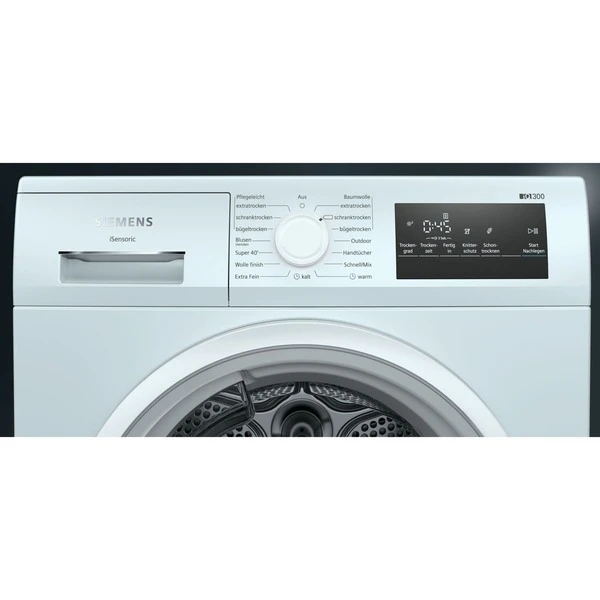| Bedienung | touchControl-Tasten: Schontrocknen, Knitterschutz, Programmdauer, Trocknungsgradfeinjustage, 24 h Fertig in, vollelektronische Einknopf-Bedienung für Feuchtegesteuerte-, Zeit- und Spezialprogramme | ||